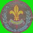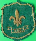 zijden insigne waarin de lelie van de NPO, het internationale Scouts embleem,