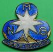 ster en in de bladen de letters NMG. Onder het klaverblad een lint met daarin