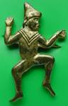 metalen speld, voorstellende een dansende kabouter, als installatieteken