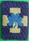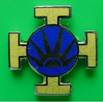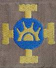 zonnetje op een blauw rondje, op een bruine achtergrond. Dit insigne werd ook